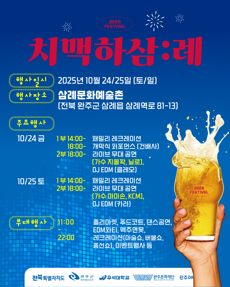 치킨과 맥주, 그리고 흥겨움이 어우러지는 삼례만의 특별한 밤이 돌아왔습니다.